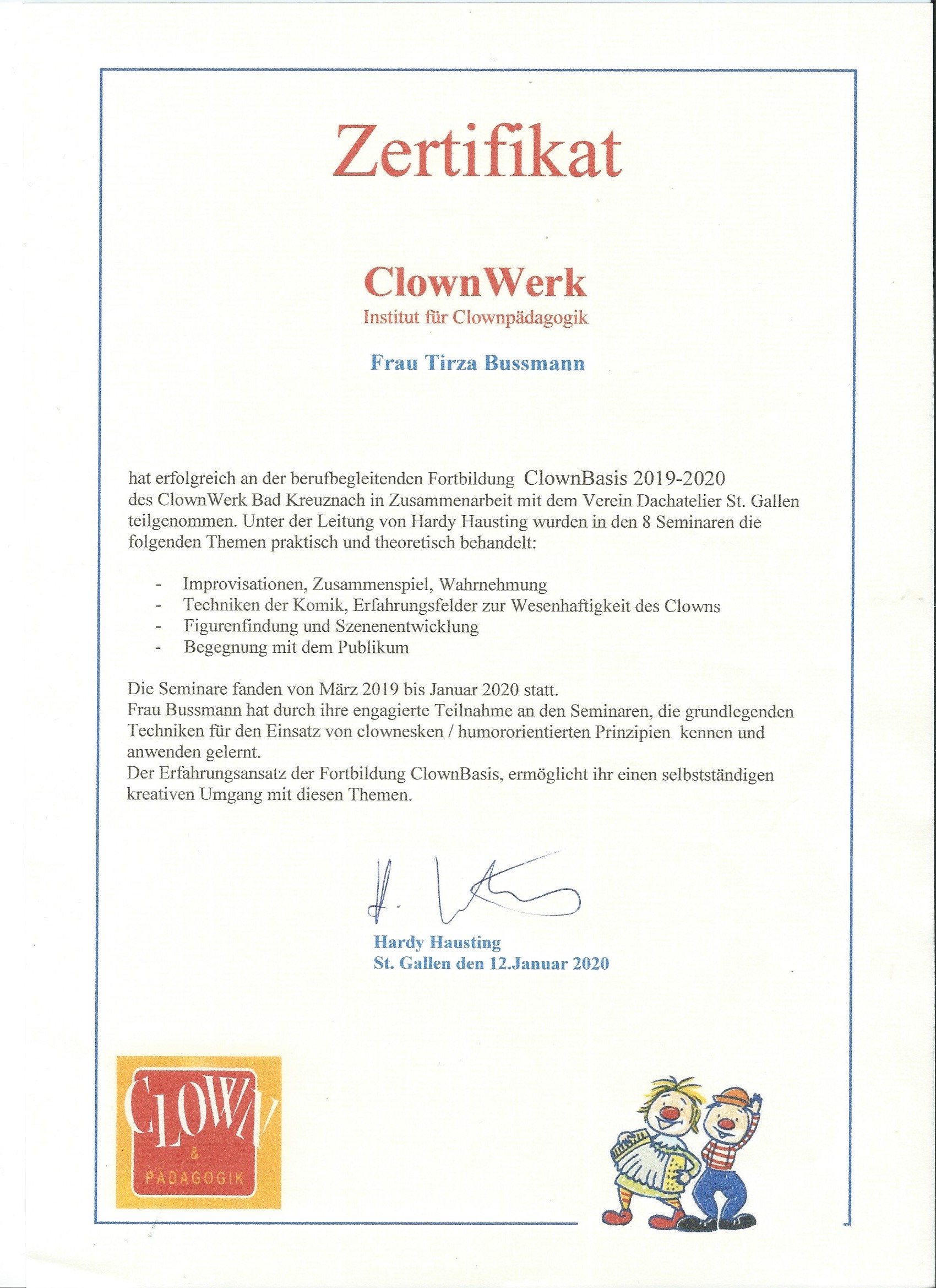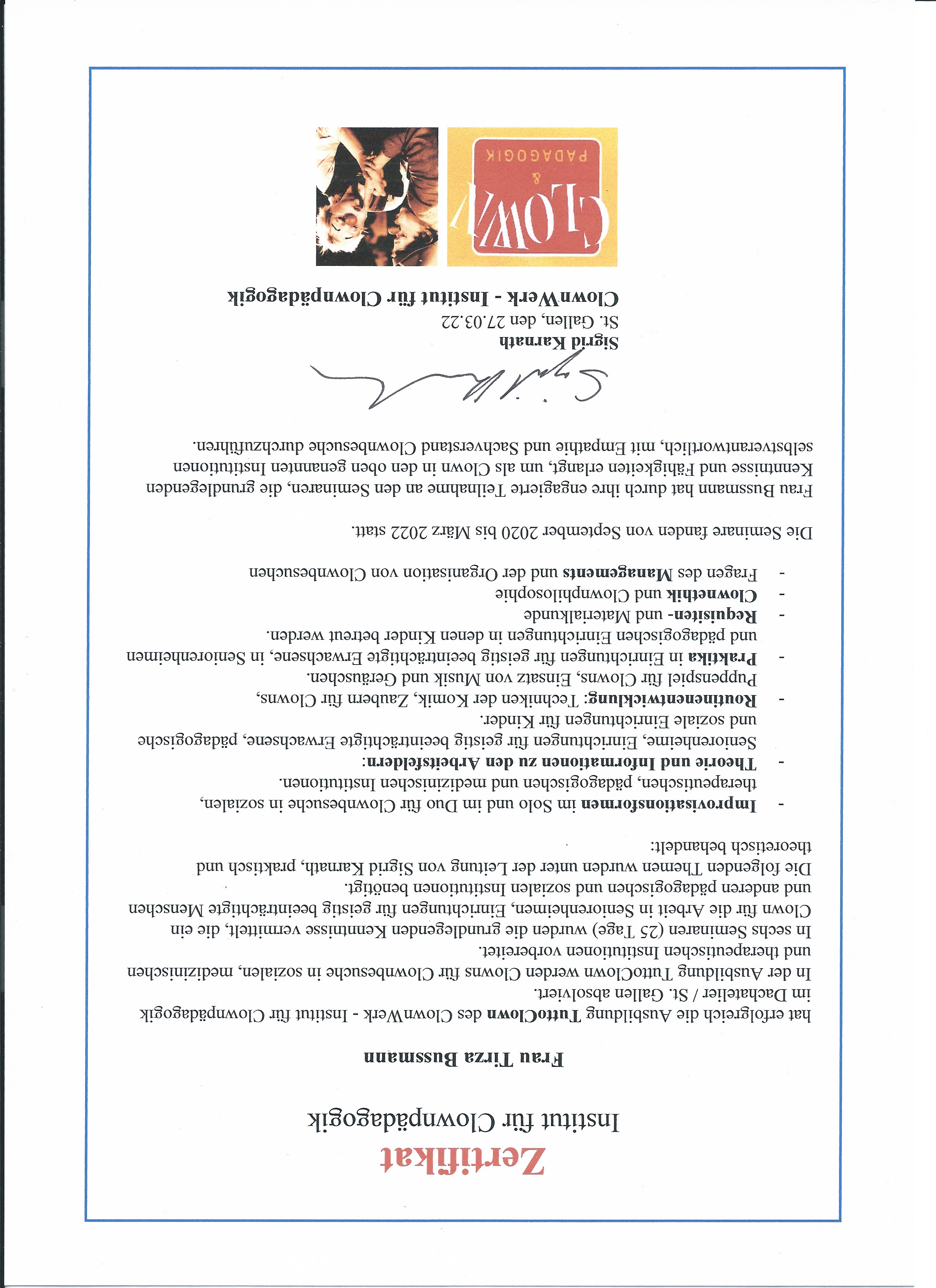Tutto Clown 2020 - 2022, Clown Werk Institut für Clown Pädagogik in St. Gallen. Unter der Leitung von Sigrid Karnath